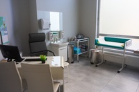 Sprzedam kompletne wyposażenie gabinetu zabiegowego, stan bardzo dobry, sprzęty zakupione w 2018, bez śladów użytkowania. Meble wysoki połysk, łatwe mycie i dezynfekcja.